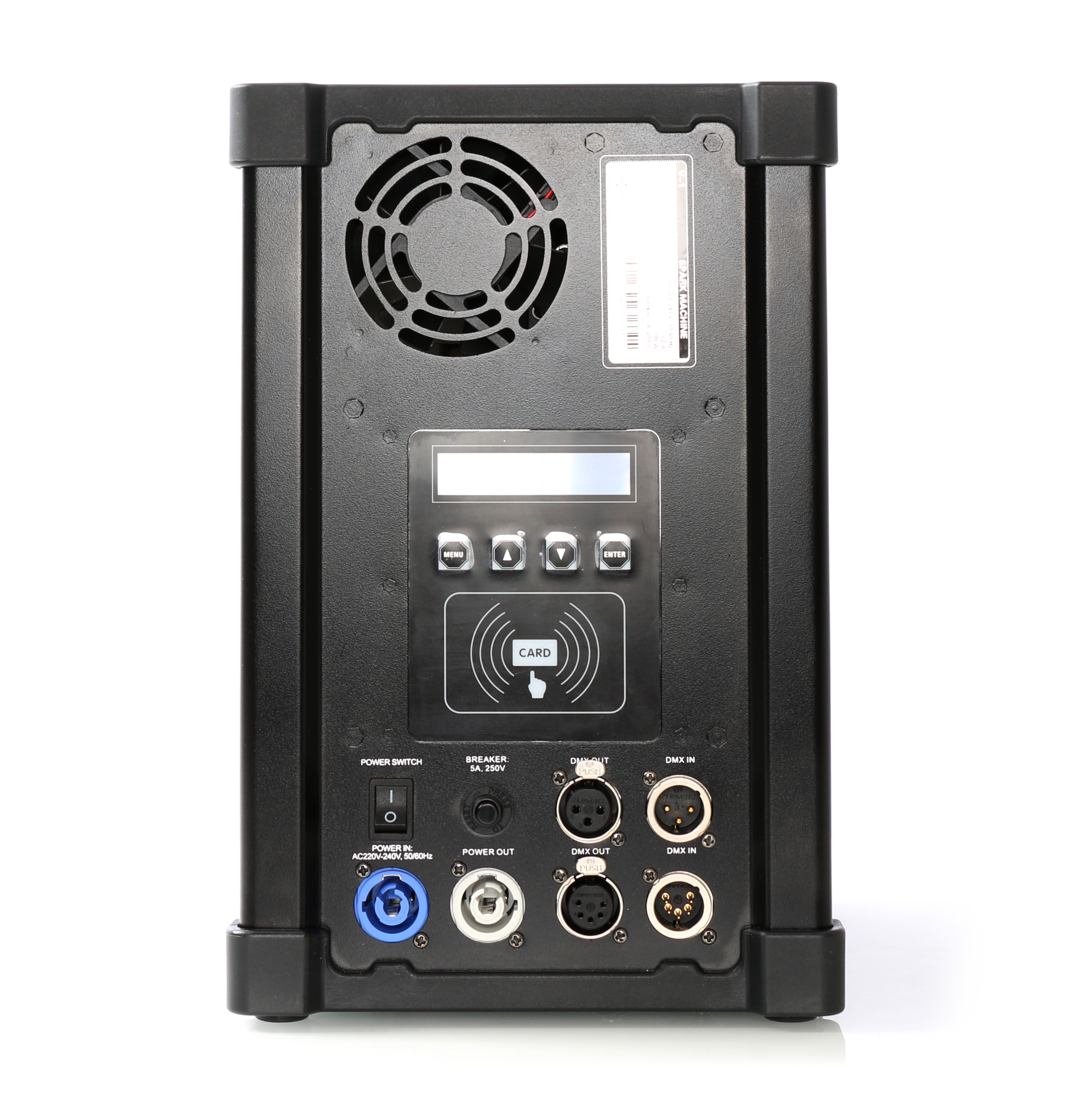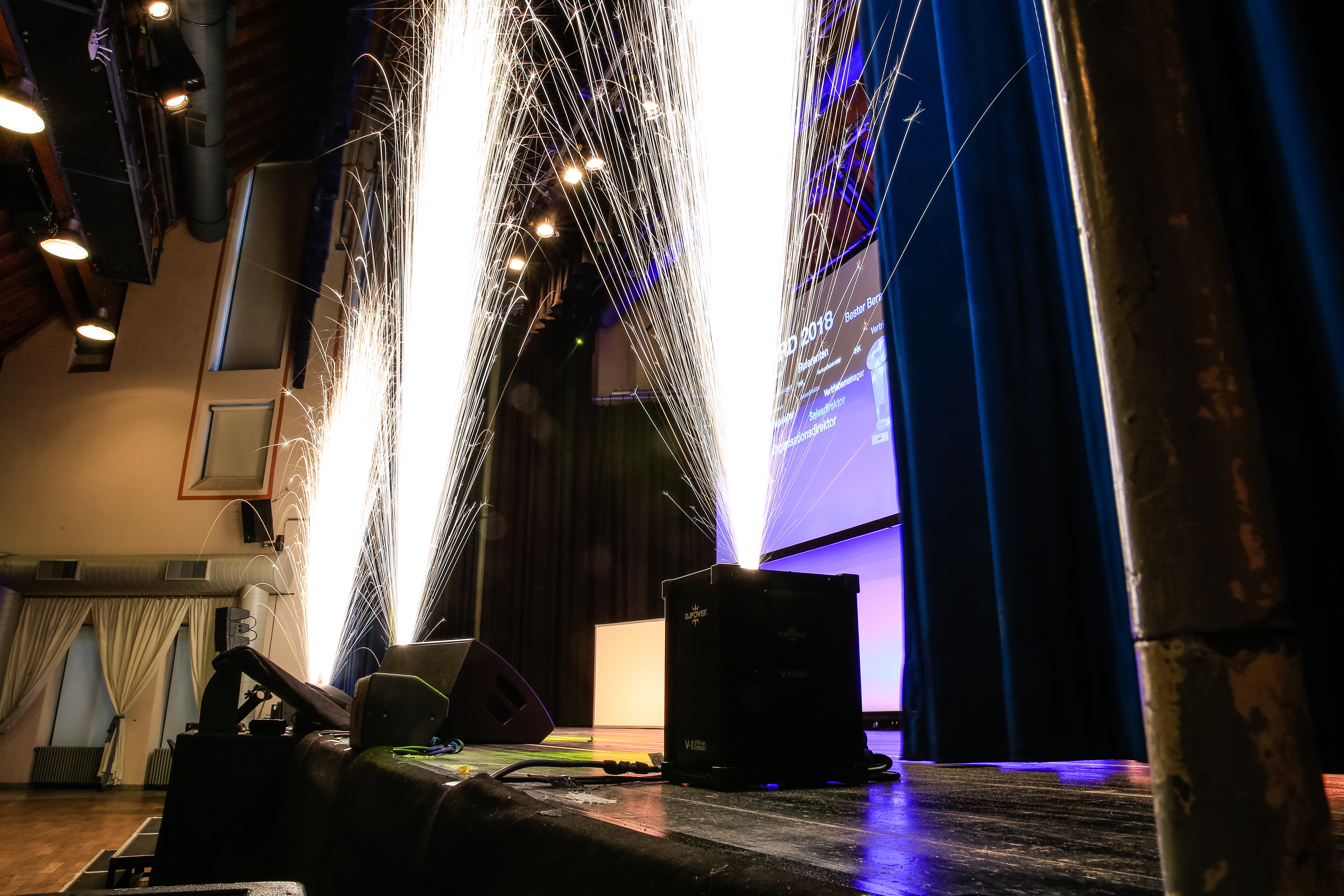 The Spark V-1 is controlled via DMX512. There are both 3-pin and 5-pin XLR connectors available. To use the Spark V-1 no pyro technician certificate is necessary.