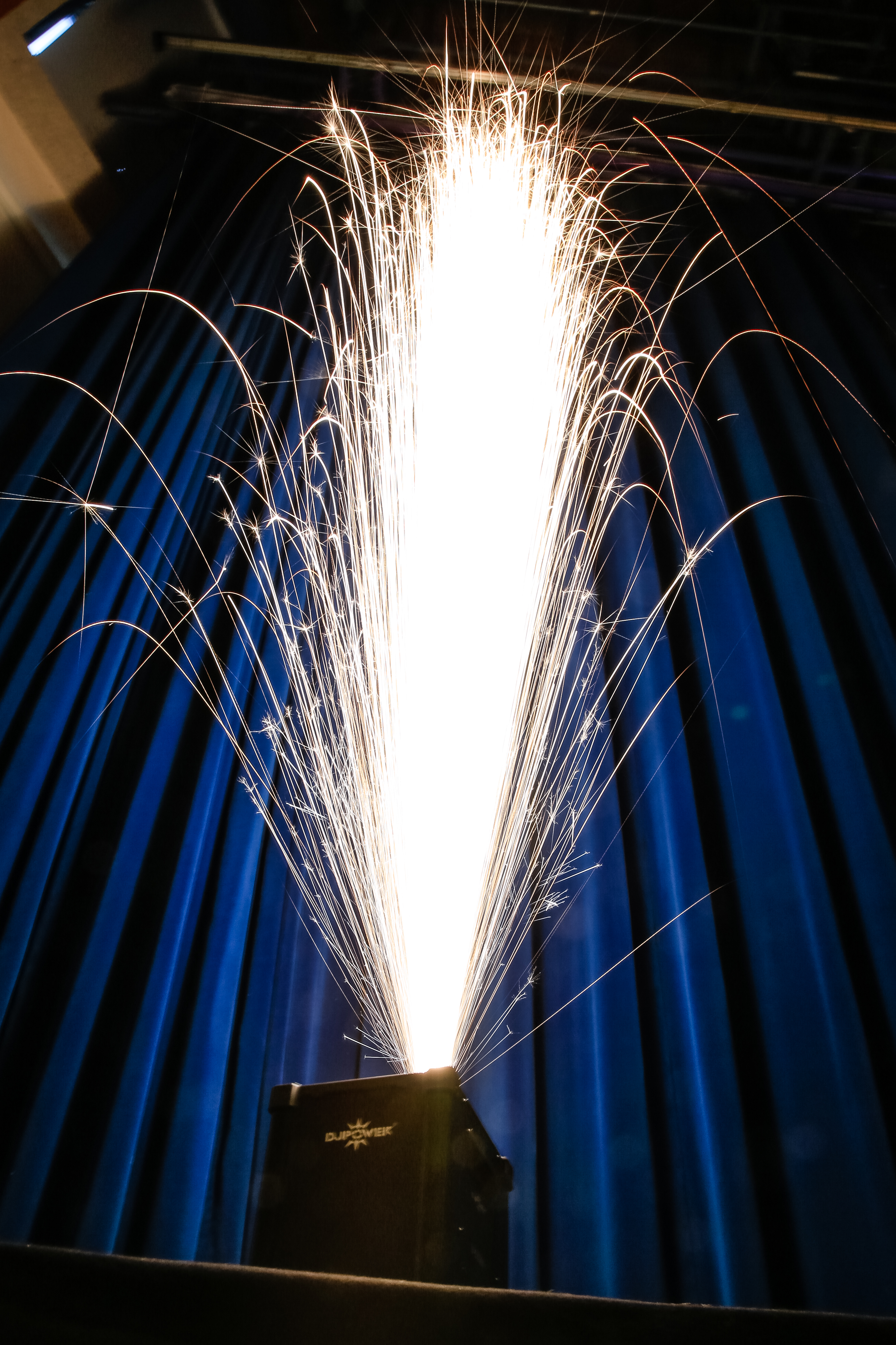 The Spark V-1 by DJ Power is an impressive and innovative effect machine that produces a sparkling fountain up to 5 meter height by using special granules. These sparkling fountains are much cooler than traditional pyrotechnics by heating the specially formulated DJ Power granules and therefore can be used in- and outdoors. Due to this unique feature the Spark V-1 can be used in many different settings, such as a wedding, a gala event, a festival or even a theatre.