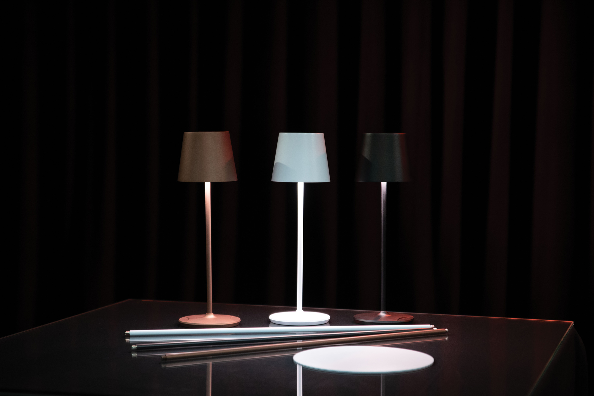Die EventLITE Table-SW ist in den Farben Schwarz, Weiß und Bronze erhältlich. Für jede Version können Sie auch ein passendes 50 cm langes Verlängerungsrohr wählen. Dank des universellen M8-Gewindeadapters können Sie auch Ihr eigenes individuelles Distanzrohr wählen. Der Sockel ist mit drei Magneten ausgestattet, die ihm einen starken Halt auf Metall verleihen. Sie können eine optionale 30 cm lange Metallplatte unter die Tischdecke legen, wenn Sie zusätzlichen Halt wünschen.